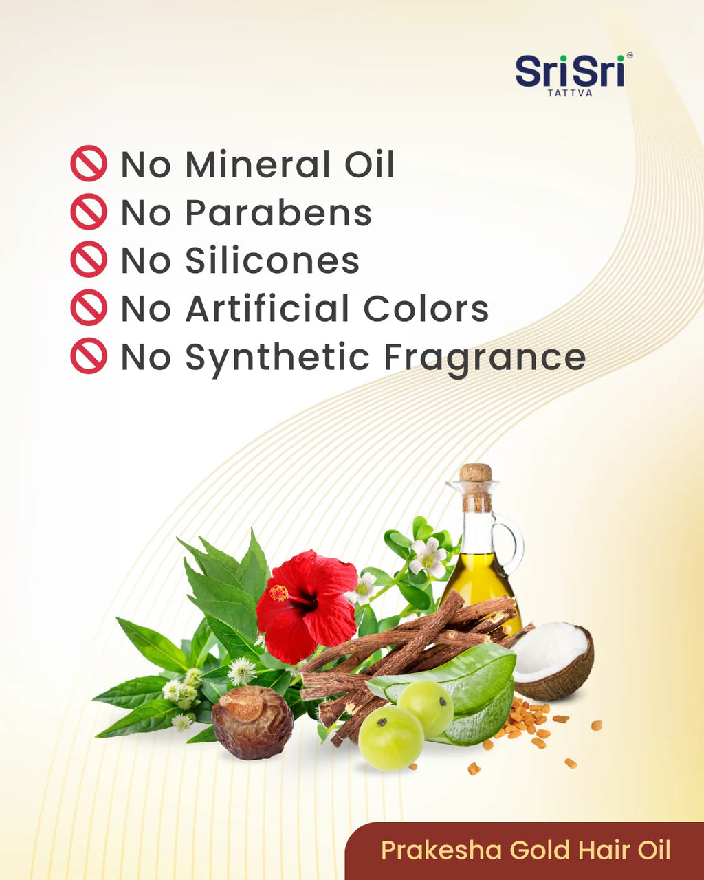 End your day with the essence of Ayurveda in your hands. Prakesha Gold Hair Oil, crafted with Coconut and Sesame oils and 10 herbs like Amla, Hibiscus, and Fenugreek, nourishes deeply while its light herbal fragrance calms your mind. With every stroke, Brahmi eases stress, while Bhringraj and Amla work to protect against greying and hair fall. More than just oil — it’s your nightly ritual of strength, shine, and balance. 🌿